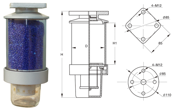 用途:吸濕器用于清除和干燥由于變壓器油溫之變化而進入變壓器(或互感器);儲油柜的空氣中的雜物和潮氣,以保持變壓器油的絕緣強度。
